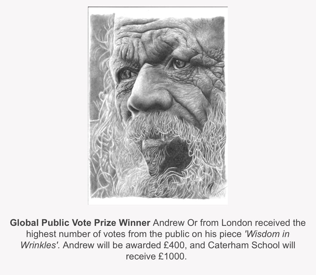 Following the Art Award in London, ‘Wisdom in Wrinkles’ was shortlisted into the lineup of the Global Art Award. Up against talented entries from artists across nine regions, I am honoured to be awarded the Public Vote Award. I would like to say a massive thank you to everyone who voted for the piece and supported me throughout this year’s iteration of the Art Prize.